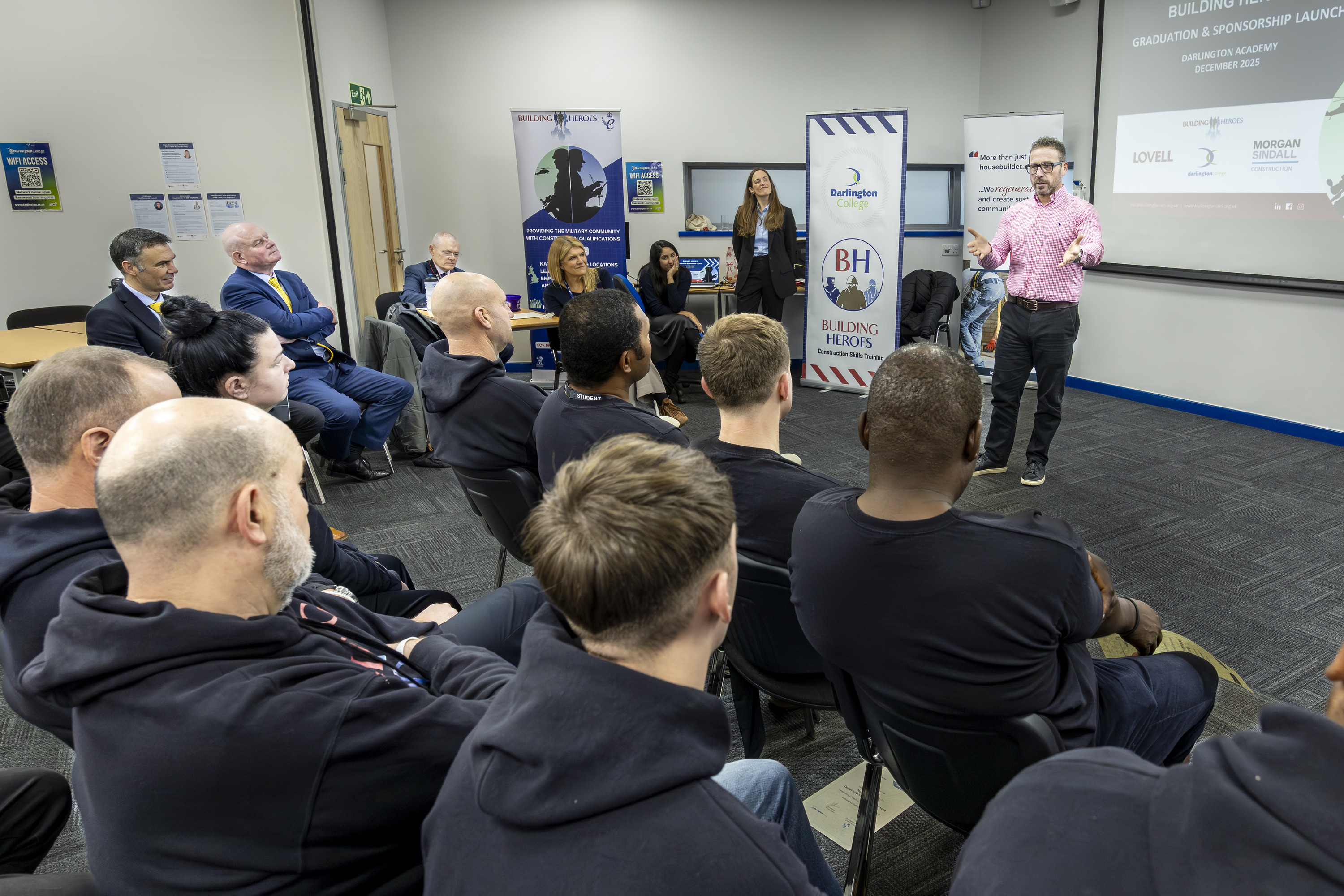 A trailblazing three-year partnership between Lovell, Morgan Sindall Construction and the Building Heroes Education Foundation launches the industry focussed sponsorship of the Darlington Skills Academy, a major support hub for Service leavers and veterans looking to enter into a career within the construction industry, delivered with Darlington College, a leading FE institution and outstanding training partner in the North East.