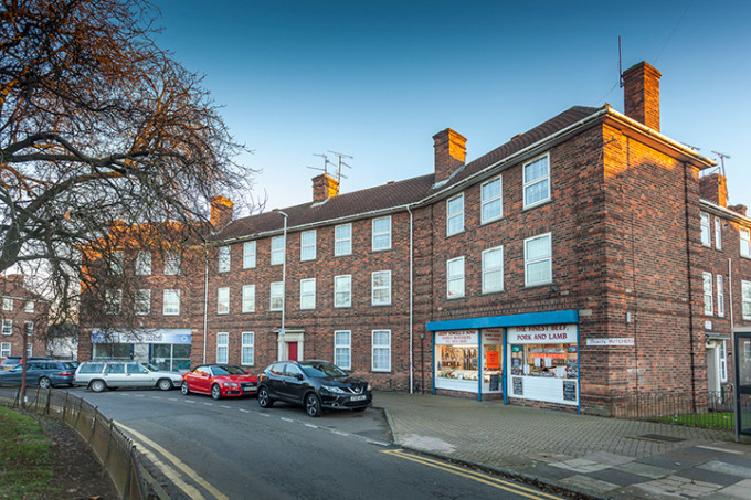 two identical blocks of eleven, three-bedroom flats with internal communal stairways